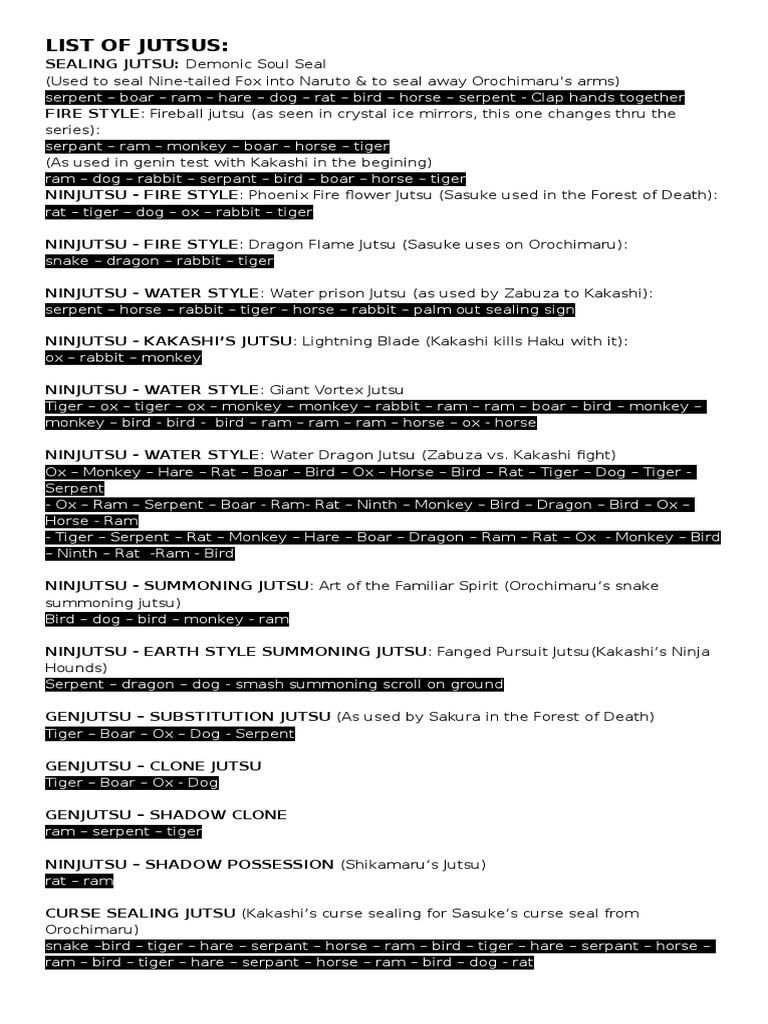 Naruto Jutsu List Naruto Uzumaki Jutsu Techniques With Hand Signs - Summoning jutsu hand signs 7 steps.